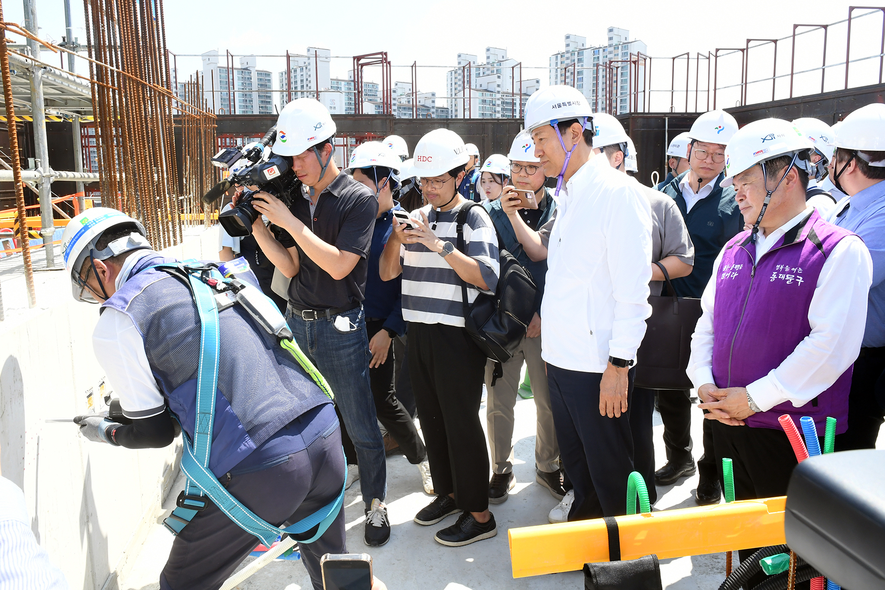 | 2023.7.19.이필형 동대문구청장이 오세훈 서울시장과 함께 아파트 부실시공을 막기 위한 긴급 현장점검을 위해 이문3구역 주택재개발 정비사업 공사 현장을 찾았습니다. 최근 인천 검단 지하주차장 붕괴사고 등 아파트 부실시공 논란이 잇따라 발생함에 따라 서울시에서 긴급 점검을 실시한 것입니다. 공사현장 관계자로부터 공정 상황 및 설계구조 등에 대해 브리핑을 받고 건축에 쓰이는 콘크리트 강도를 확인하는 등 현장을 꼼꼼히 살폈습니다. 동대문구는 건설 현장의 안전 및 품질 관련 사고 예방을 위해 지난 17일 건축공사 관계자 특별 교육을 실시하는 등 노력을 기울이고 있습니다. 서울시는 건설 현장의 모든 시공 과정을 동영상을 촬영해 관리하는 시스템을 도입했습니다. 현재 공사비 100억원 이상 공공 공사장 74곳을 대상으로 시범 운행 중이며 내년부터는 100억원 미만의 공공 공사와 민간 건축공사장으로 확대할 계획이라고 밝혔습니다. |