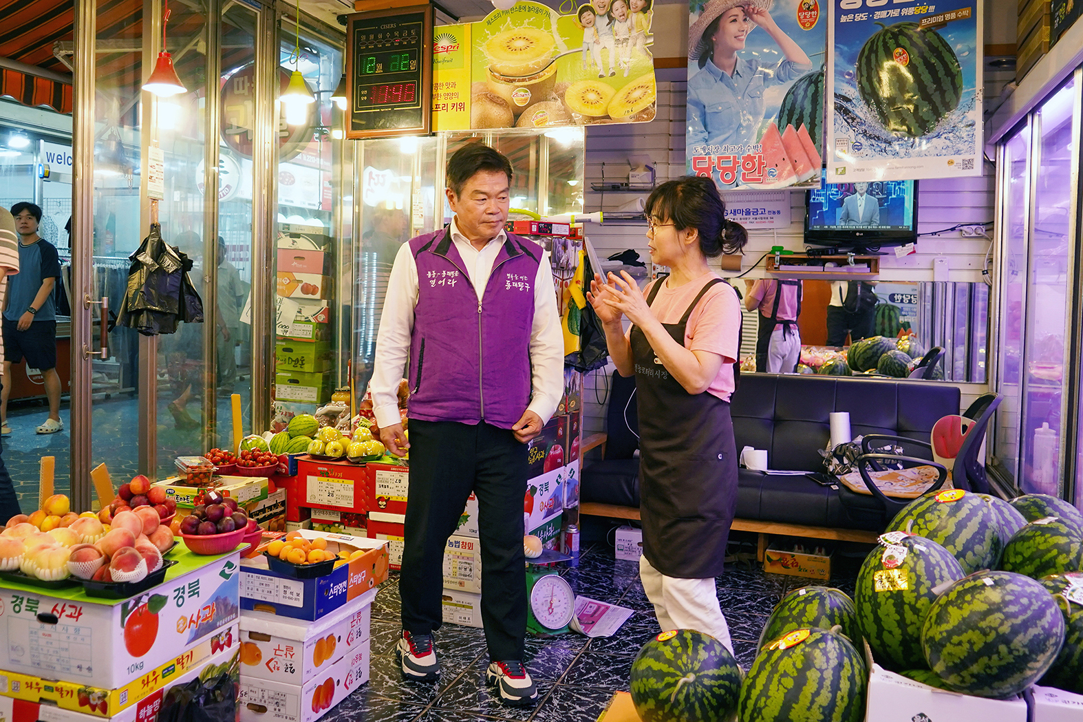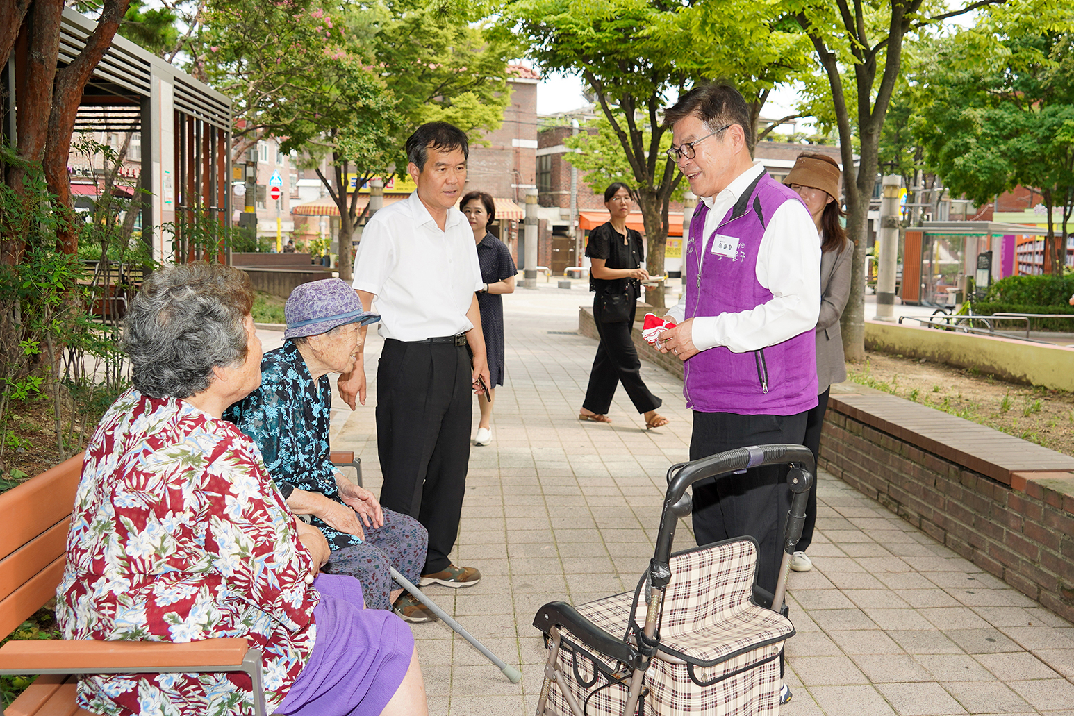 | 2024.7.12. 민선8기 2주년을 맞아 주요 민생현장 순찰 및 시설 점검을 통해 주민의 다양한 목소리를 구정에 반영하기 위한 ‘주민소통 현장통통이 전농1동에서 진행되었습니다. ‘주민소통 현장통통은 관내 주요 장소를 도보로 걸으며 마주치게 되는 주민들로부터 동대문구의 바람직한 미래상과 생활불편, 건의사항을 듣고 구정에 반영하기 위해 마련된 소통창구입니다. |