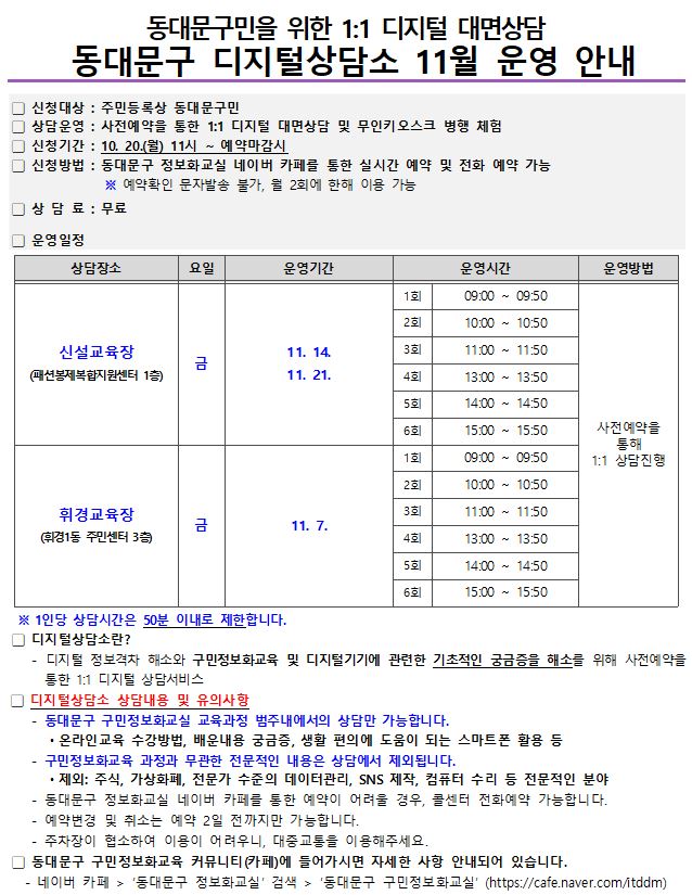 | 2025년 11월 「동대문구 구민정보화교육 '디지털 상담소'」 대면교육 안내 | |
