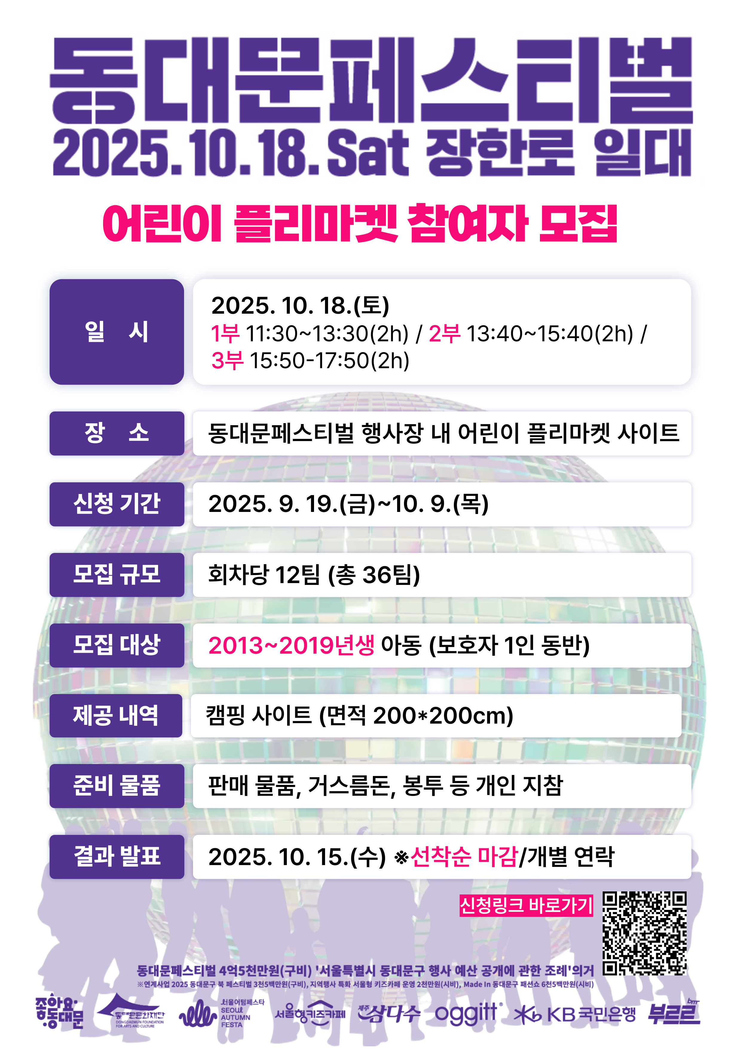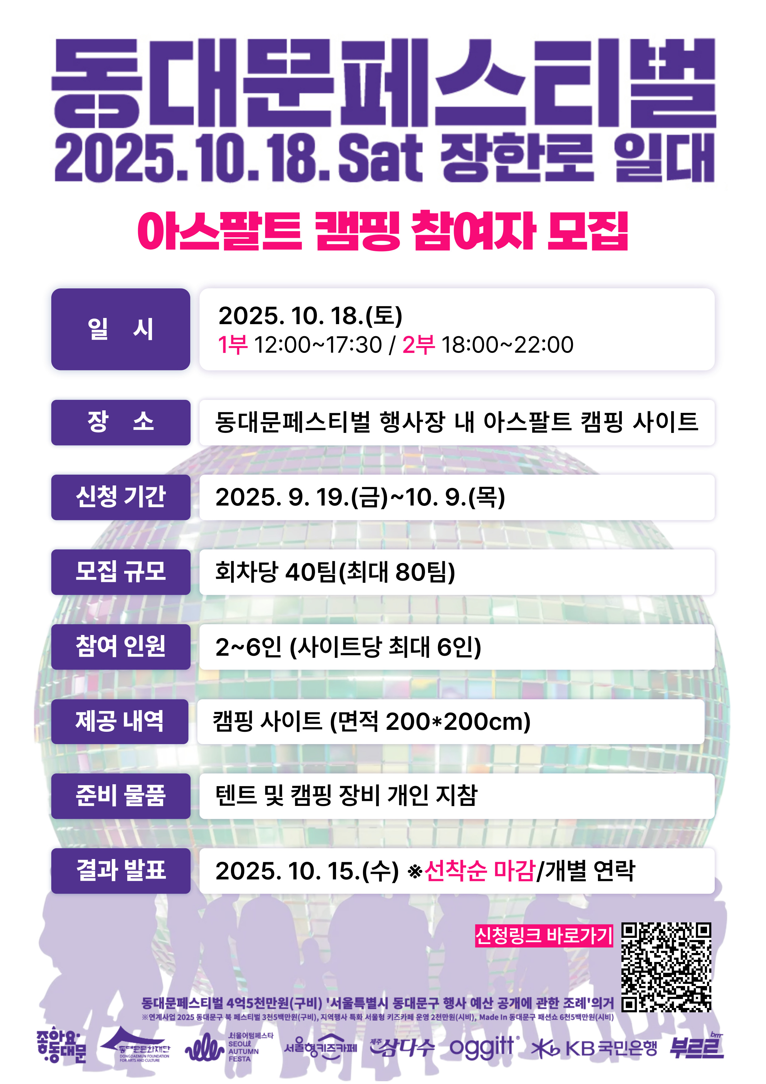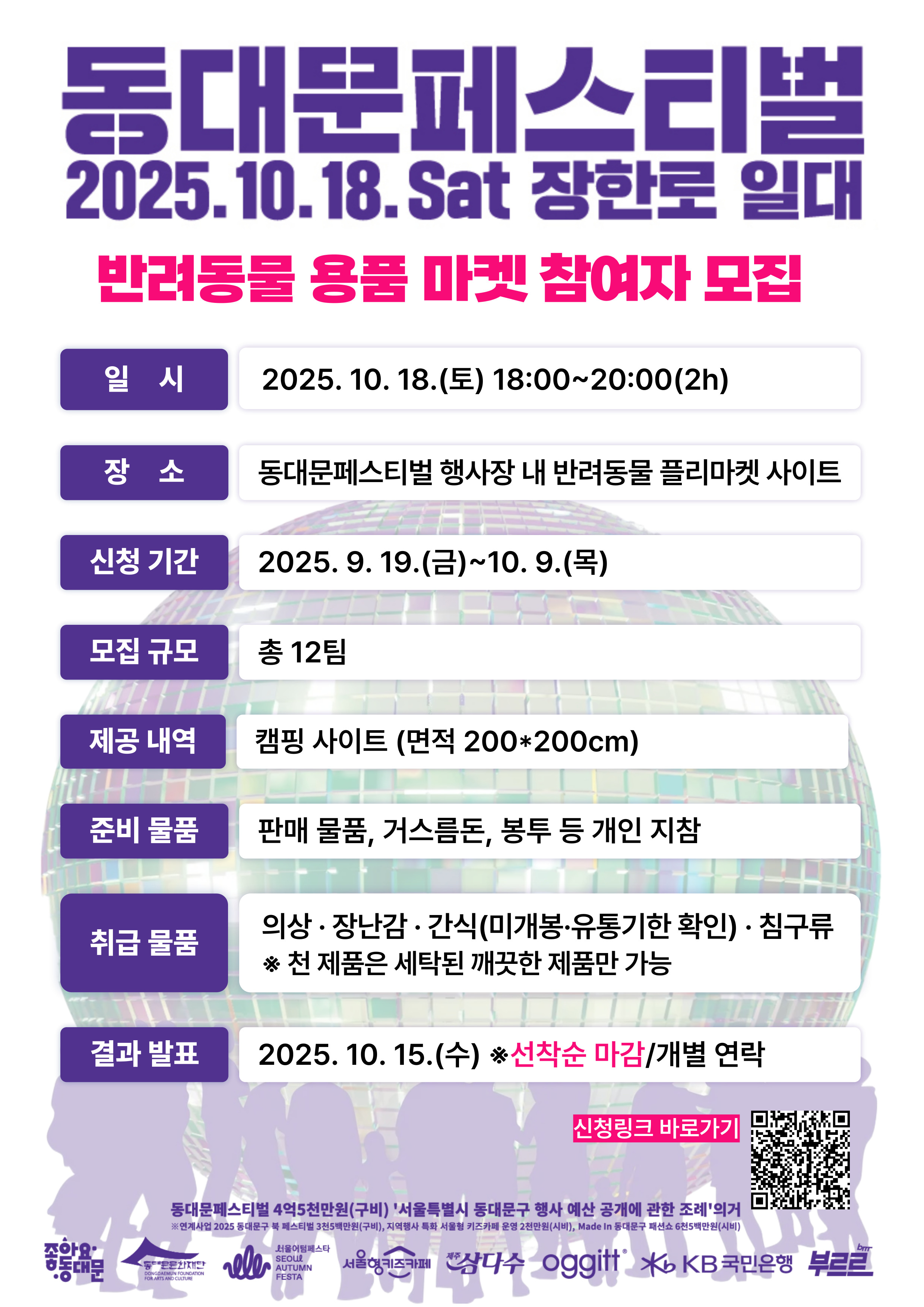 2025. 10. 18. (토) 11:00~22:00 개최하는 동대문 페스티벌 참여자 모집 안내드리니